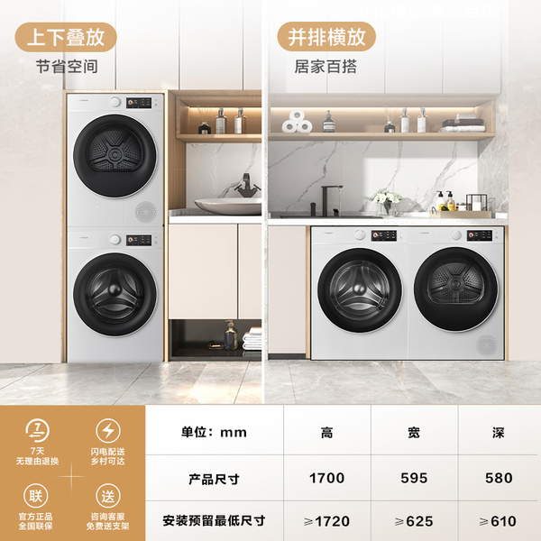 海信璀璨棉花糖10KG洗烘套装家用三变频活水洗热泵烘干机E5Q