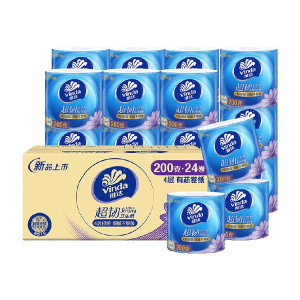 【孙颖莎推荐】维达超韧有芯卷纸4层加厚卫生纸家用实惠整箱装