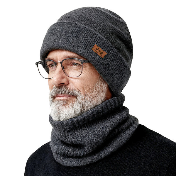 jeep吉普中老年羊毛针织帽男士冬季2025新款防风保暖加绒毛线帽冬