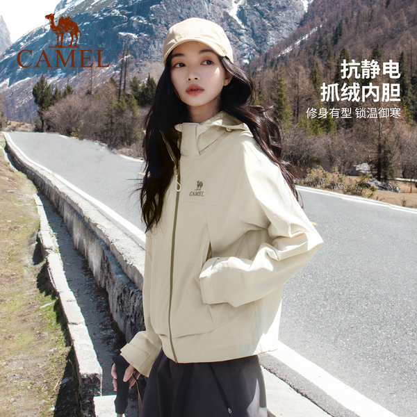 骆驼户外波影蓝单层冲锋衣女小个子短款外套春季防风防水登山服男