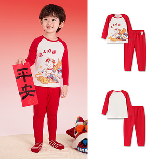 婧麒宝宝纯棉贺岁新年秋冬婴儿秋衣秋裤套装